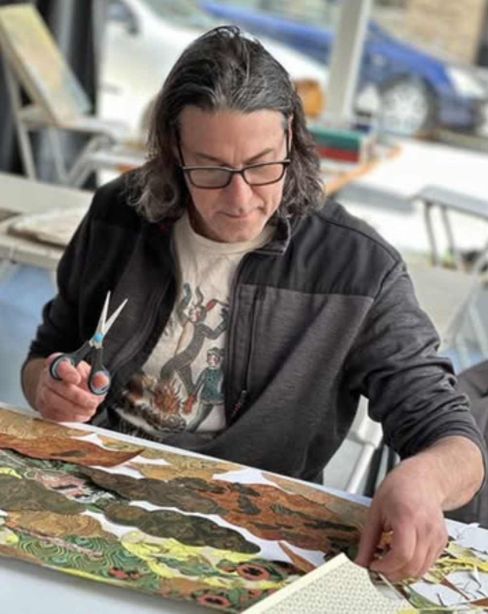 RICK MIDLER is an accomplished artist and creative director based in Brooklyn, NY, renowned for his intricate collages that skillfully camouflage decorative papers and juxtapose patterns. His work delves into the concept of "pareidolia," blending an eye for animation with multi-cultural influences. Rick's distinctive technique, inspired by Matisse and Japanese bonsai masters, showcases a meticulous scissor method that brings his vibrant pieces to life.