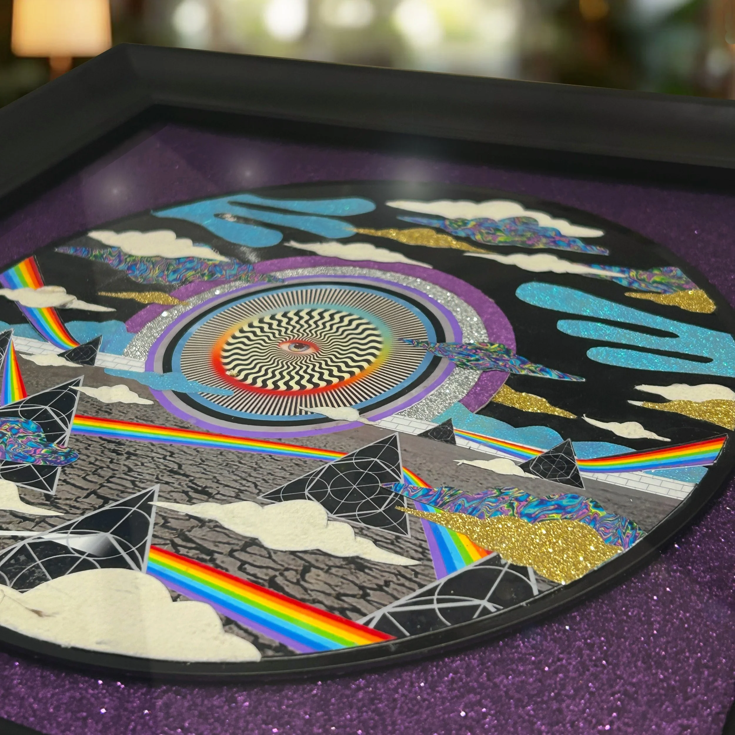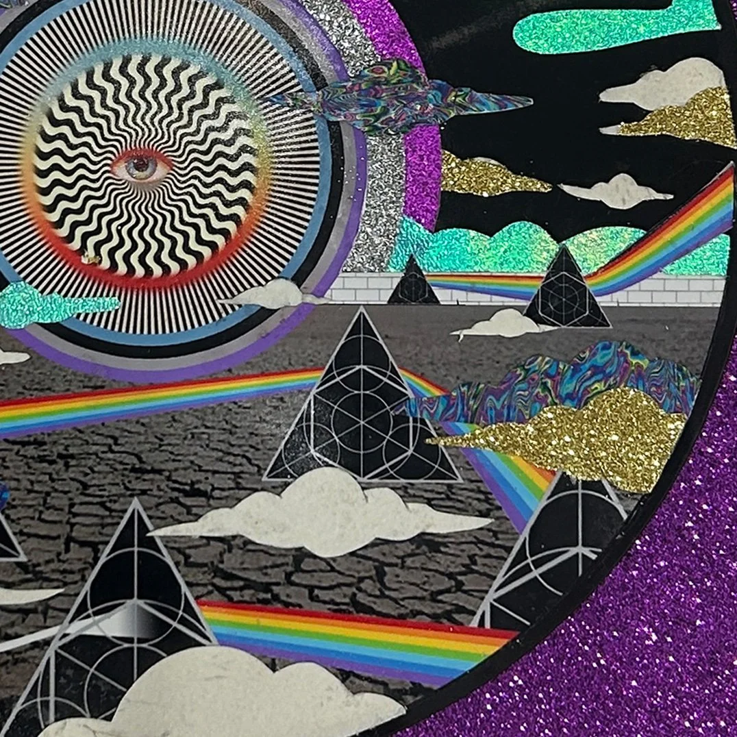 The guiding principle form this collage on vintage vinyl comes from Hipgnosis and Storm Thorgerson. Hipgnosis had a rule—no band photos unless necessary. I followed that rule in honor of Thorgerson, whose work made Pink Floyd a visual experience as much as a musical one.